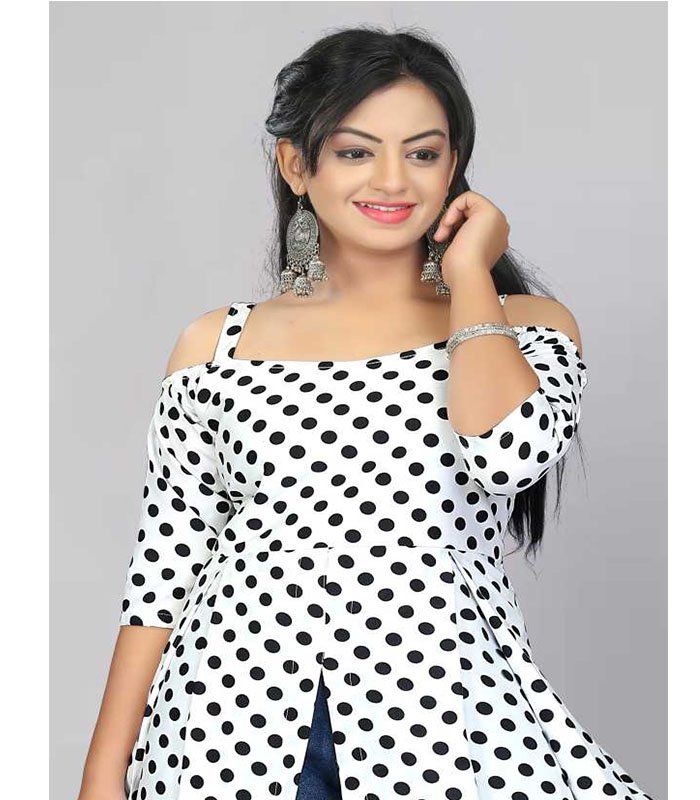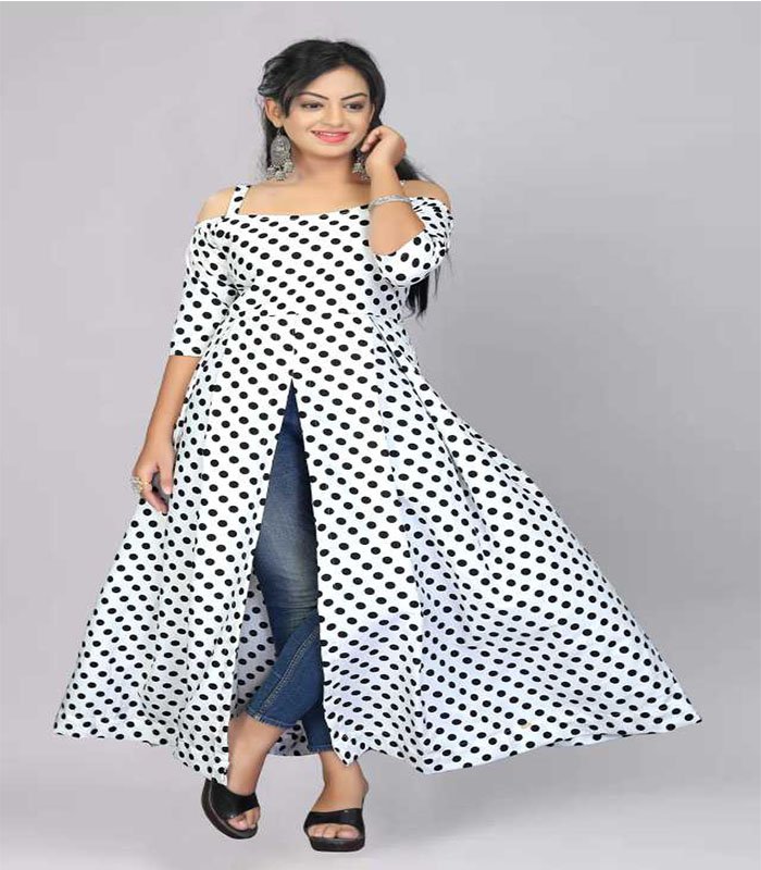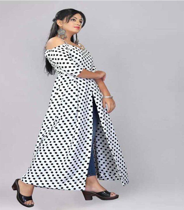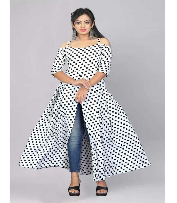 Enter Women Printed Rayon Frontslit Kurta (White, Black)