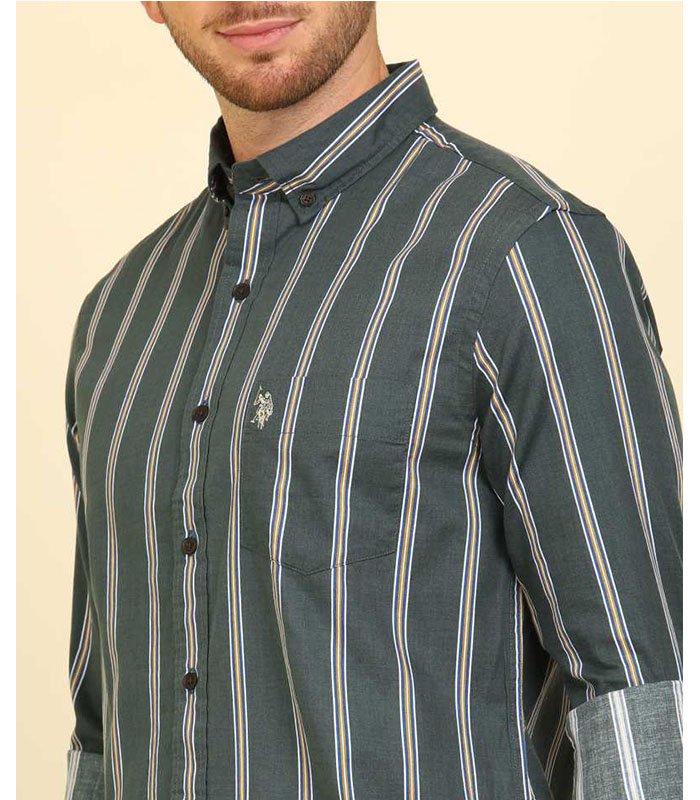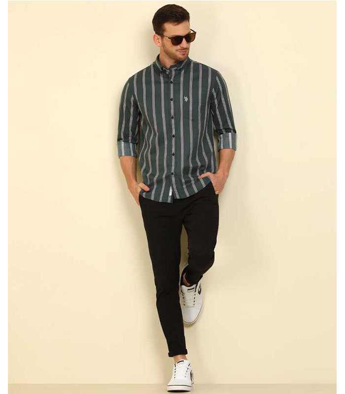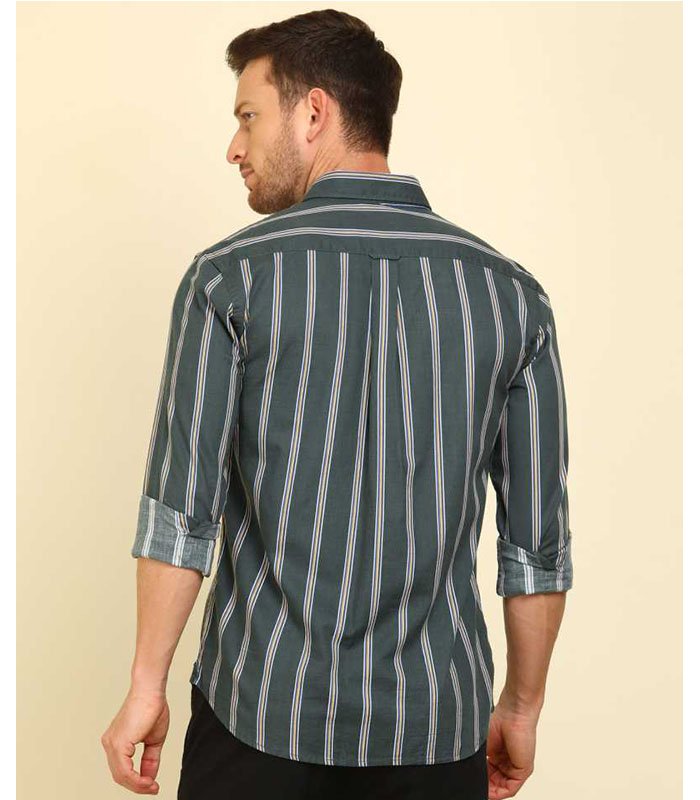 Men Regular Fit Striped Slim Collar Casual Shirt